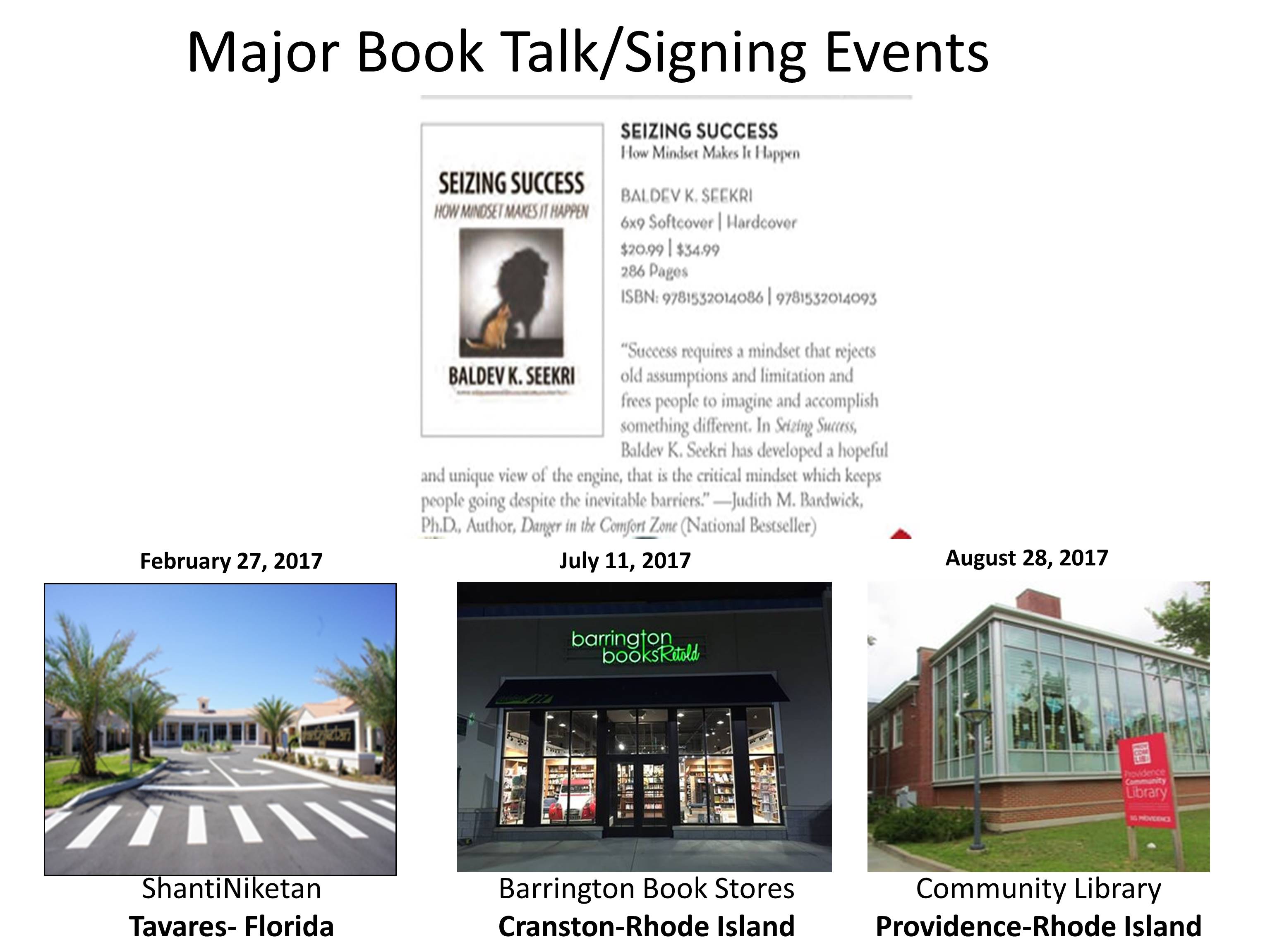 “Success requires a mindset that rejects old assumptions and limitation and frees people to imagine and accomplish something different. In Seizing Success, Baldev Seekri has developed a hopeful and unique view of the engine, that is the critical mindset which keeps people going despite the inevitable barriers.”